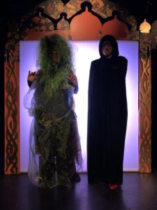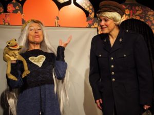 Deux comédiennes – musiciennes sont accompagnées de marionnettes, de séquences de  théâtre d’ombre pour illustrer l’univers féérique de ce spectacle, adapté d’un conte merveilleux de Alexandre Afanassiev.